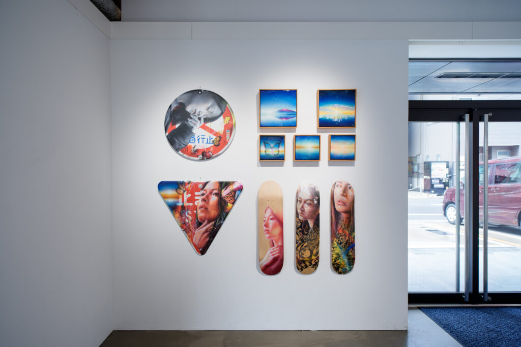 YOHEYY:自分は絵柄自体はそんなにストリートっぽくはないんですけど、逆に標識やデッキといった素材を選ぶことで面白くなるかなと思って、今回はそういう作品を選ばせてもらいました。スケートボードをずっとやってきたという背景を踏まえて見てもらえたら、「なるほどな」と感じて見てもらえるかなと思います。