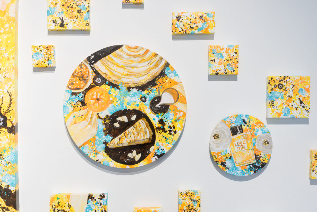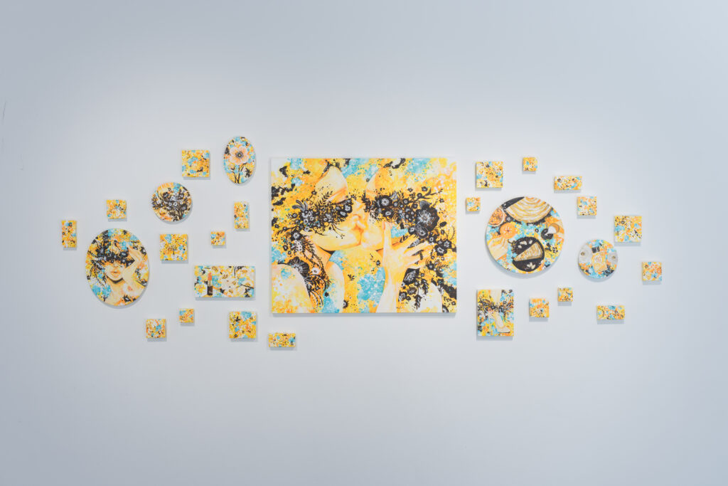 silsil:シリーズ自体は前から取り組んでいるもので、すでに販売もしているから在庫が全然なかったんです。グループ展の企画内容を聞いたときに、なんとなく黄色い作品がいいなと思って、新しく作った感じですね。