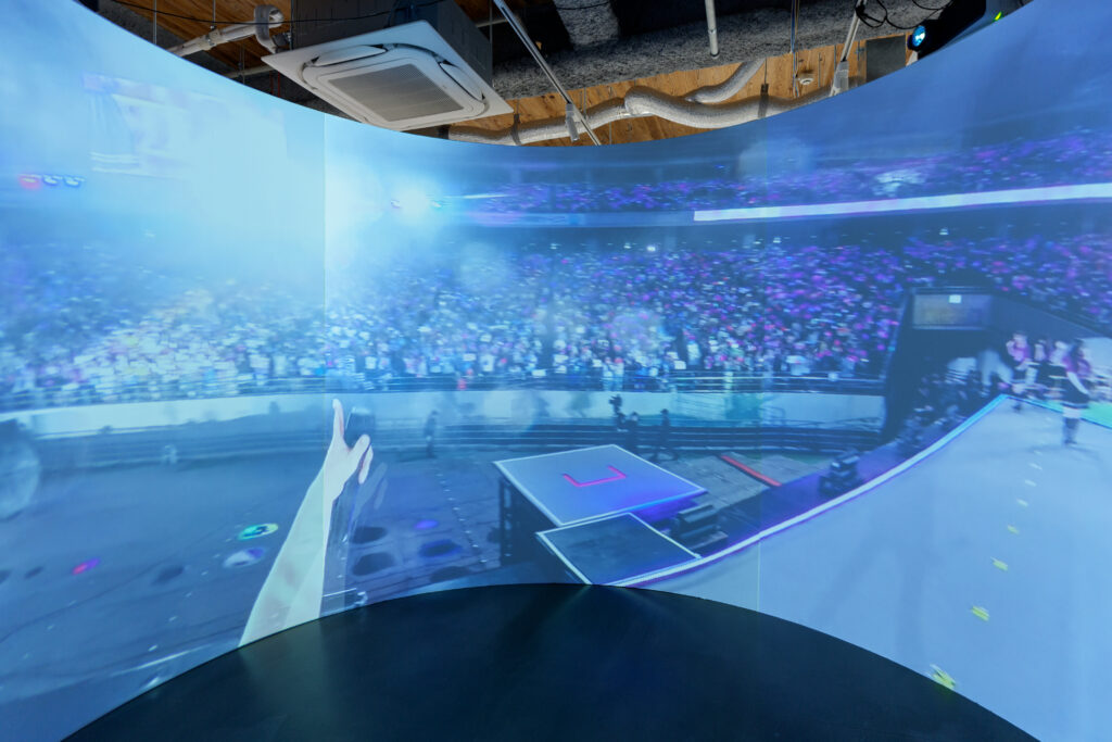 まず「実際のライブで映像を撮りたい」ということ。スタッフさんに相談して、自分で360度を撮れるカメラを持って撮影できることになりました。でも、その360度映像をどうやって体験できる形にするかですごく悩んで。最初はドーム型や帯状スクリーンの案もあったんですが、最終的に、現在の形になりました。考えに考え抜かれた形で、ようやく皆さんに体験してもらえる形になりました。